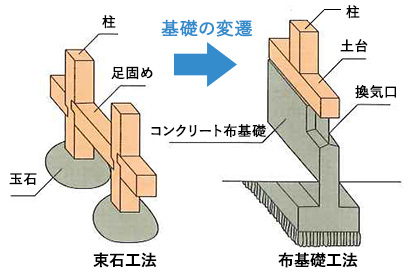 これは、関東大震災以降の国の耐震基準の徹底にともない、"地震に強い家を"と、床を低く、土台をコンクリートできっちりガードするようになったためです。