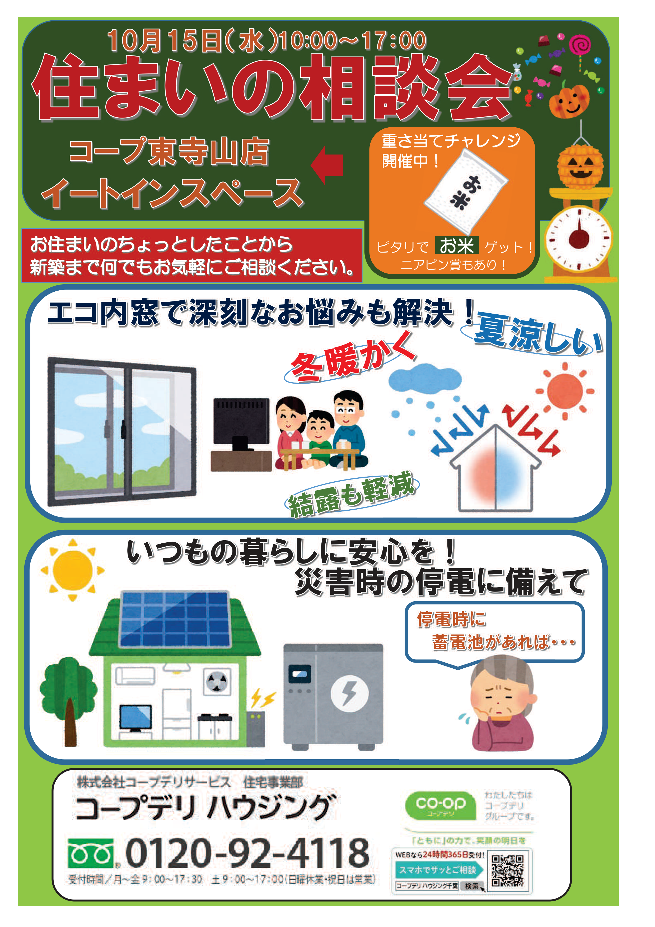コープデリハウジング様主催『住まいの相談会』にて弊社の太陽光発電システム、蓄電システム相談ブースを設けます。