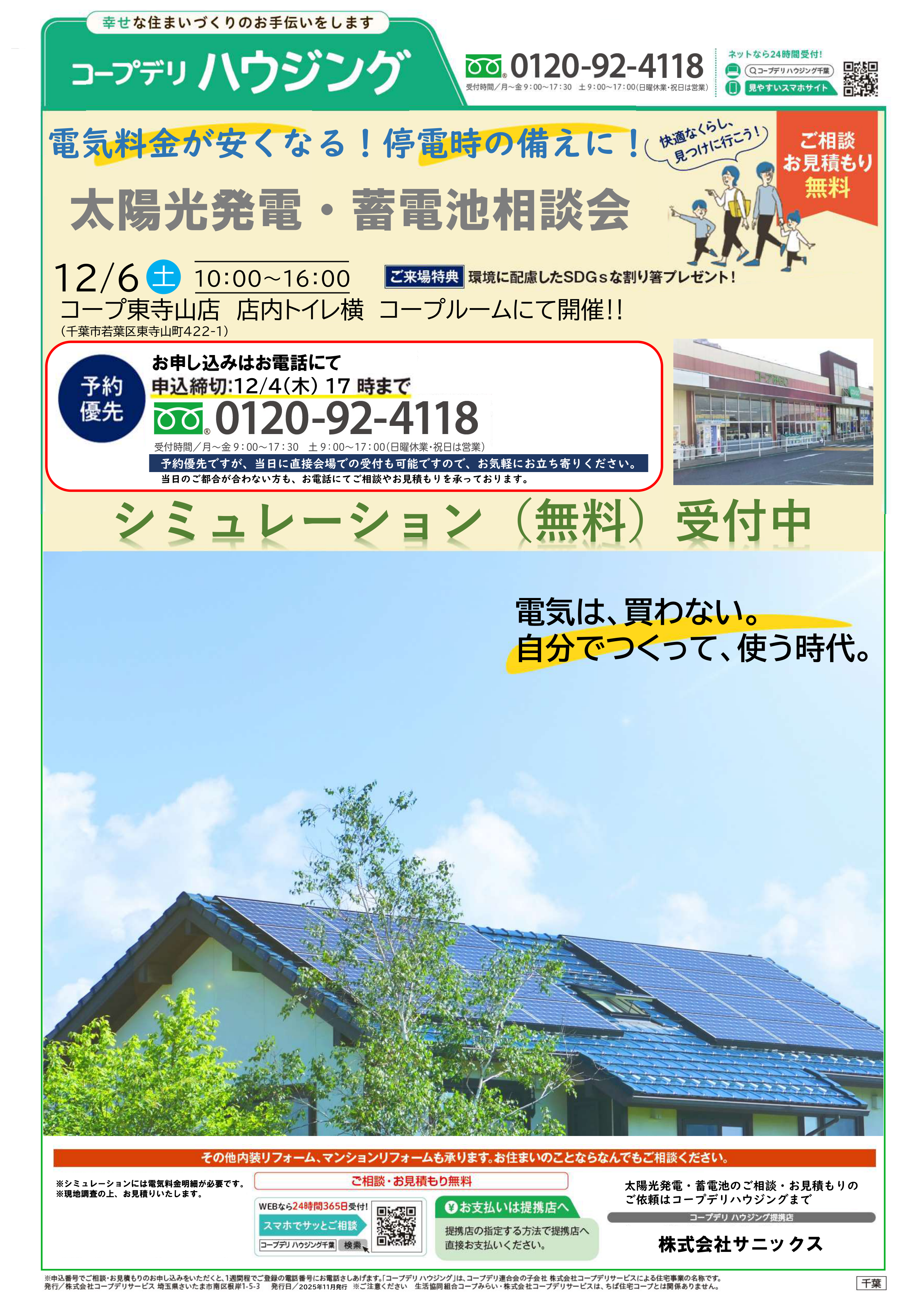コープデリハウジング様主催『太陽光発電・蓄電池相談会』にて弊社の太陽光発電システム、蓄電システム相談ブースを設けます。